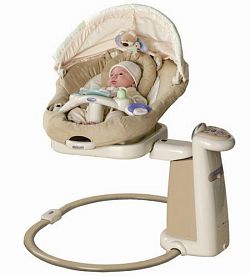 Укачивающий центр Graco Sweetpeace - уникальная система укачивания!!! Движения качелей Graco Sweetpeace копируют Ваши при укачивании ребенка на руках. Если повернуть сидение вокруг оси, можно укачивать ребенка в трех разных направлениях. Три положения спинки и шесть скоростей детских качелей Graco укачивания обеспечат ребенку комфорт. Съемное сидение можно использовать как отдельную колыбельку. Звуки: Очень разнообразный набор различных мелодий - от колыбельных и мелодий, которые помогут ребенку проснуться, до звуков дождя, ветра и биения материнского сердца. Уникальная возможность подключения к качелям Graco Sweetpeace МР3 плеера! Две скорости вибрации помогут успокоить малыша. Качели детские Graco Sweetpeace снабжены пятиточечными ремнями безопасности. Младенцам необходимо видеть простые вещи: 1) Регулируемый капор защитит ребенка от излишнего света; 2) Зеркальце поможет ребенку научиться концентрироваться на отображении; 3) Нейтральная цветовая гамма не раздражает ребенка. Также к сидению качелей Sweetpeace прикреплен "прорезыватель" для зубов и симпатичная плюшевая игрушка. Для сборки не нужны инструменты! Собирается легко и быстро. Питание как от батареек, так и от сети!!! (для вибромодуля нужна отдельная батарея).